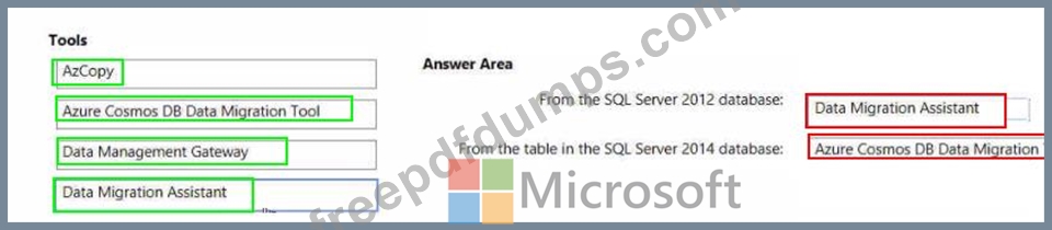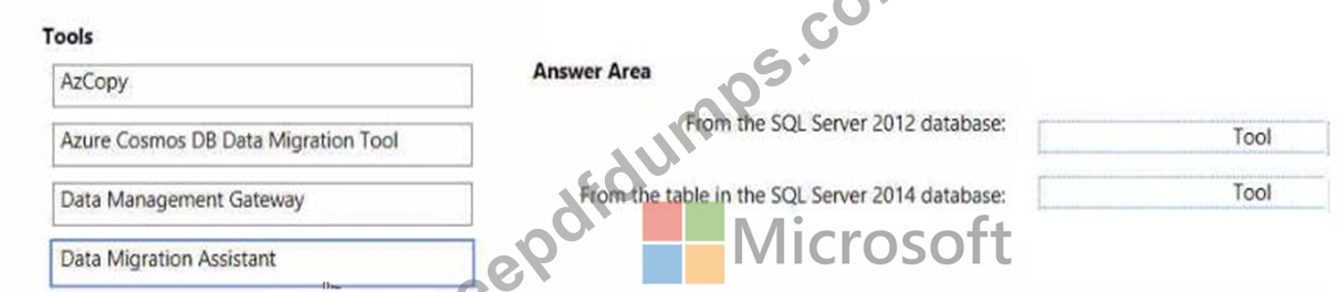 What should you recommend using to migrate the data? To answer, drag the appropriate tools to the correct data sources-Each tool may be used once, more than once, or not at all. You may need to drag the split bar between panes or scroll to view content.