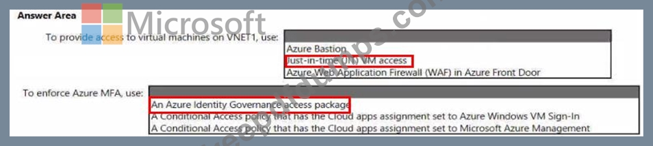 * Incoming connections to the virtual machines must be authenticated by using Azure Multi-Factor Authentication (MFA) before network connectivity is allowed.