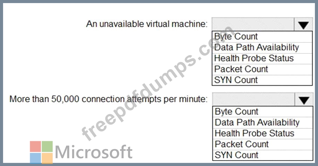 You need to develop a monitoring solution for LB1. The solution must generate an alert when any of the following conditions are met: