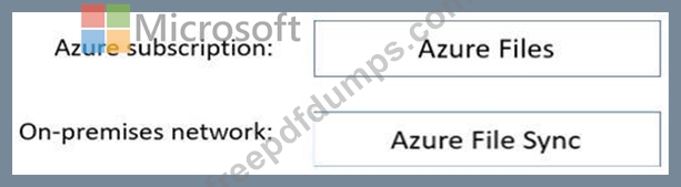 What should you deploy to the Azure subscription and the on-premises network? To answer, drag the appropriate services to the correct locations. Each service may be used once, more than once, or not at all. You may need to drag the split bar between panes or scroll to view content.
