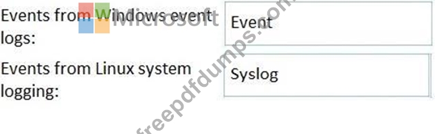 Which Log Analytics tables should you query? To answer, drag the appropriate tables to the correct log types.