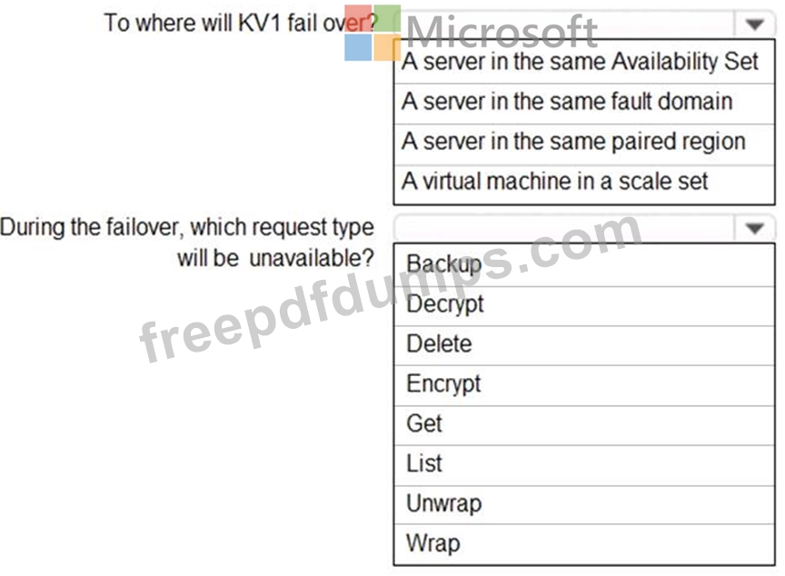 You need to identify the following if the Azure region that hosts KV1 becomes unavailable:
