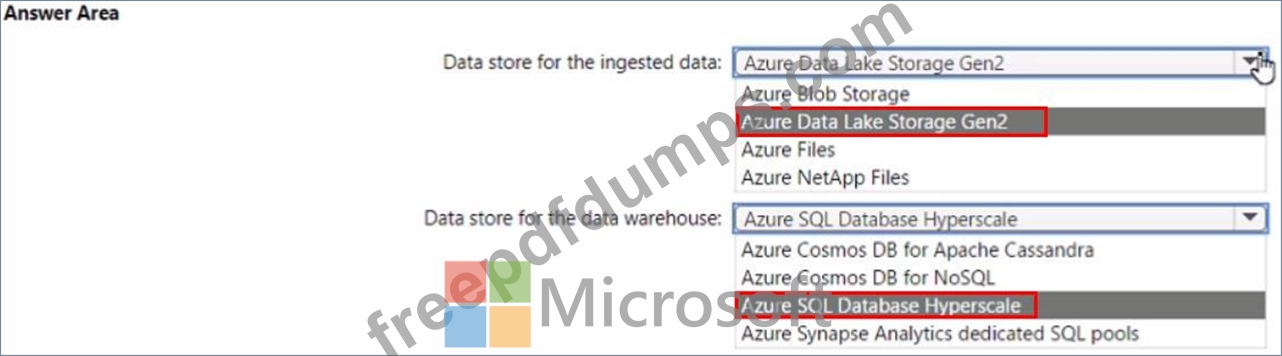 Which service should you recommend for each type of data store? To answer, select the appropriate options in the answer area.