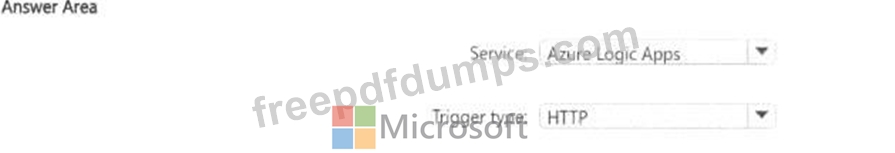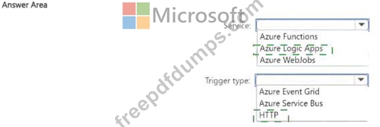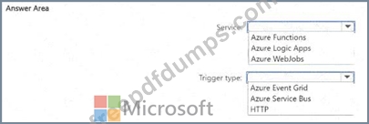 You need to recommend a service to host App2 and the type of trigger to use to call App2. The solution must minimize development effort.