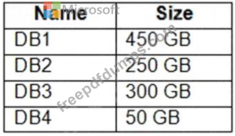Your company has an app named App1 that uses data from the on-premises Microsoft SQL Server databases shown in the following table.
