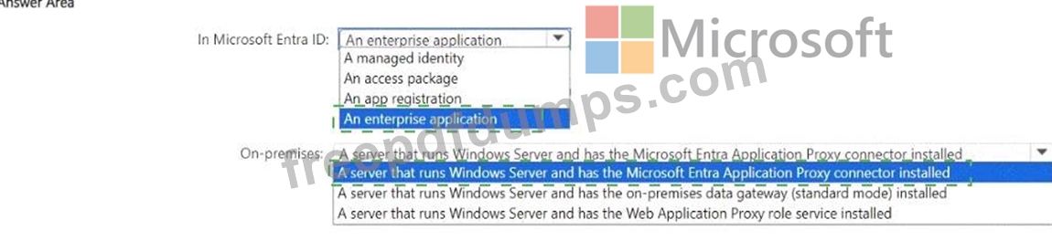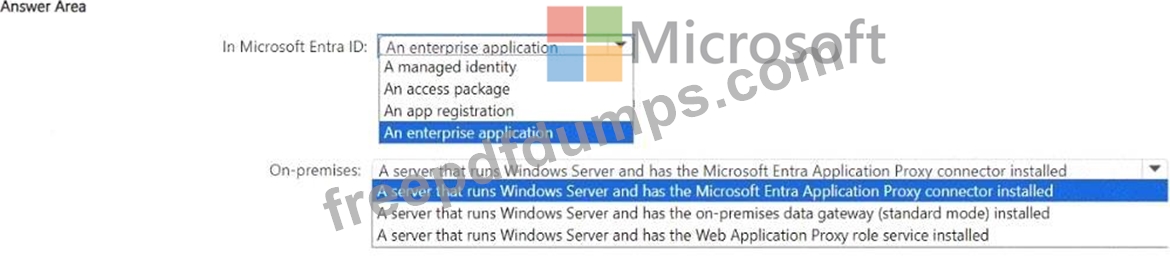 Your on-premises network contains an Active Directory Domain Services (AD DS) domain. The domain contains a server named Server1. Server1 contains an app named App1 that uses AD DS authentication.