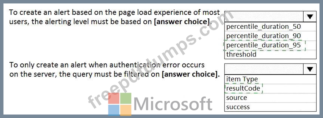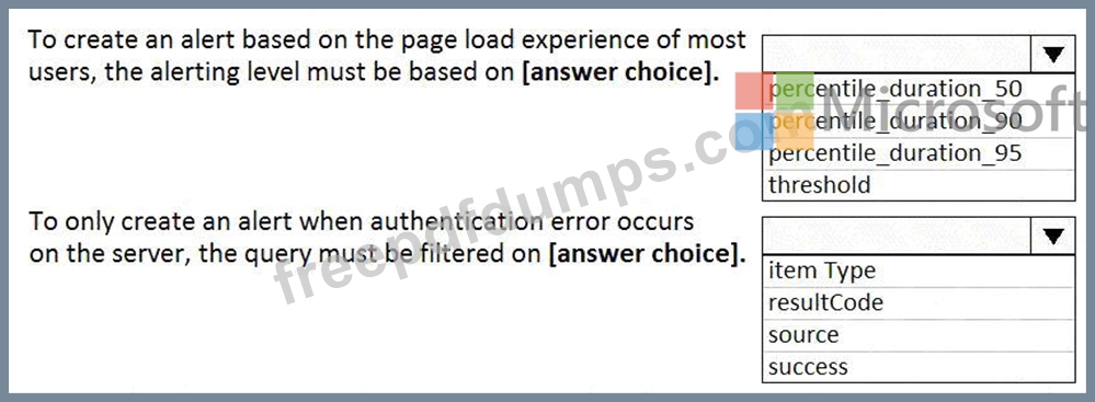 You plan to create alerts that will be triggered based on the page load performance of a home page.