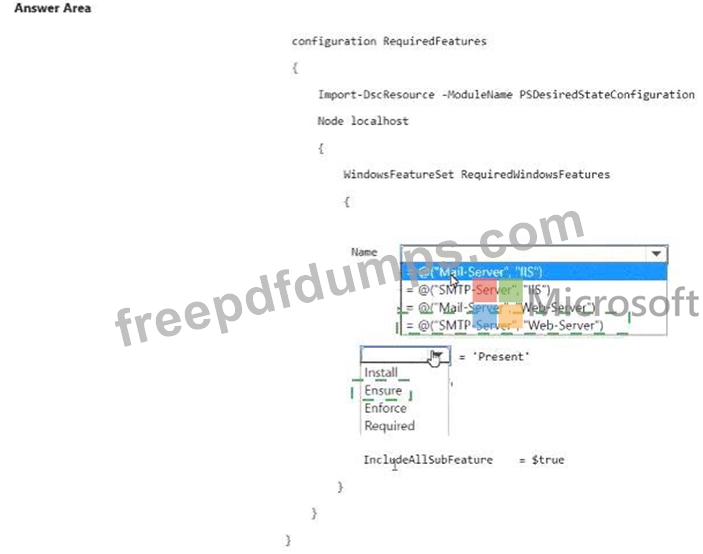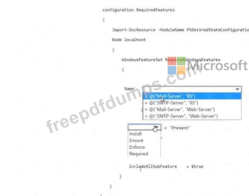 You plan to use Desired StateConfiguration (DSC) to maintain the configuration of a server that runs Windows Server 2022. The server must have the following features installed: