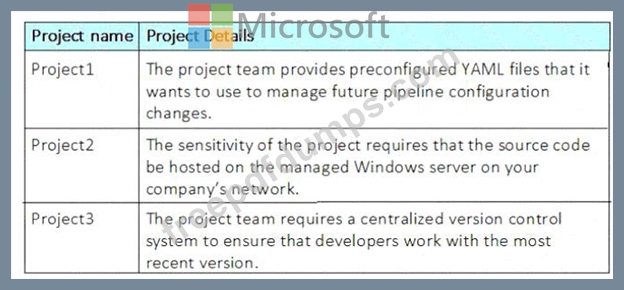 You are configuring Azure Pipelines for three projectsin Azure DevOps as shown in the following table.