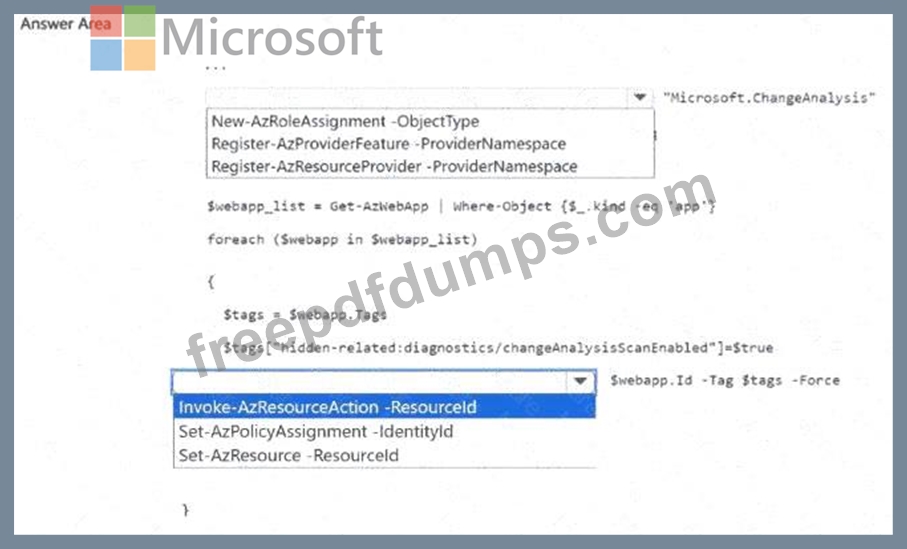 How should you complete the script? To answer, select the appropriate options in the answer area.
