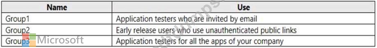 You need to create the distribution groups shown in the following table.