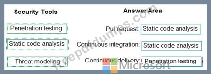 Which type of security tool should you recommend for each stage of the development process? To answer, drag the appropriate security toots to the correct stages. Each security tool may be used once, more than once, or not at all. You may need to drag the split bar between panes or scroll to viewcontent NOTE: Each correct selection is worth one point.
