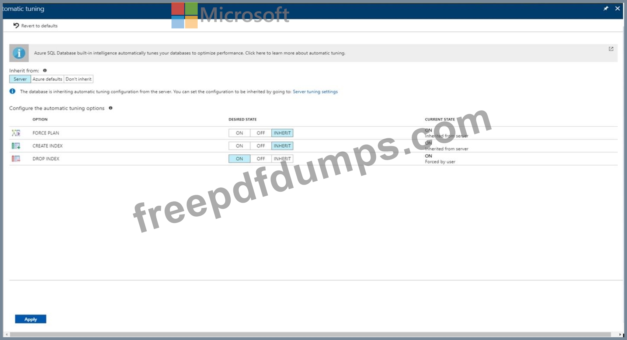 You need to ensure that queries to db1 are tuned by Azure over time. The solution must only apply to db1.