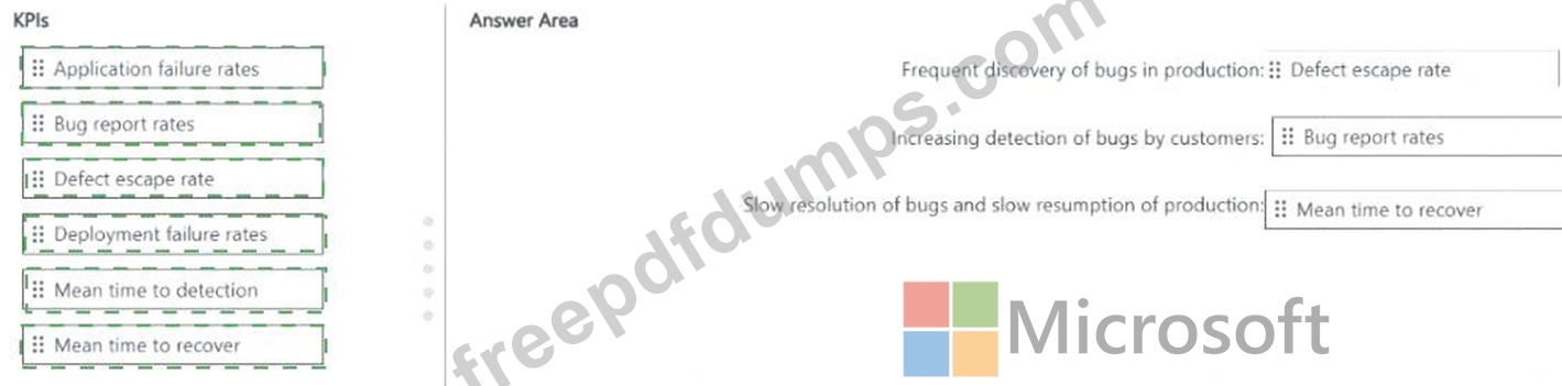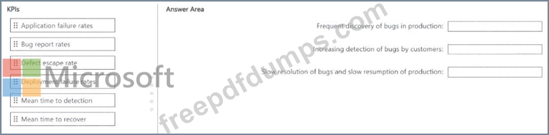 Which KPI should you implement for each issue? To answer, drag the appropriate KPIs to the correct issues.
