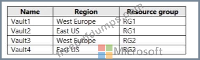 You have an Azure subscription named Sub1 that contains the Azure key vaults shown in the following table.