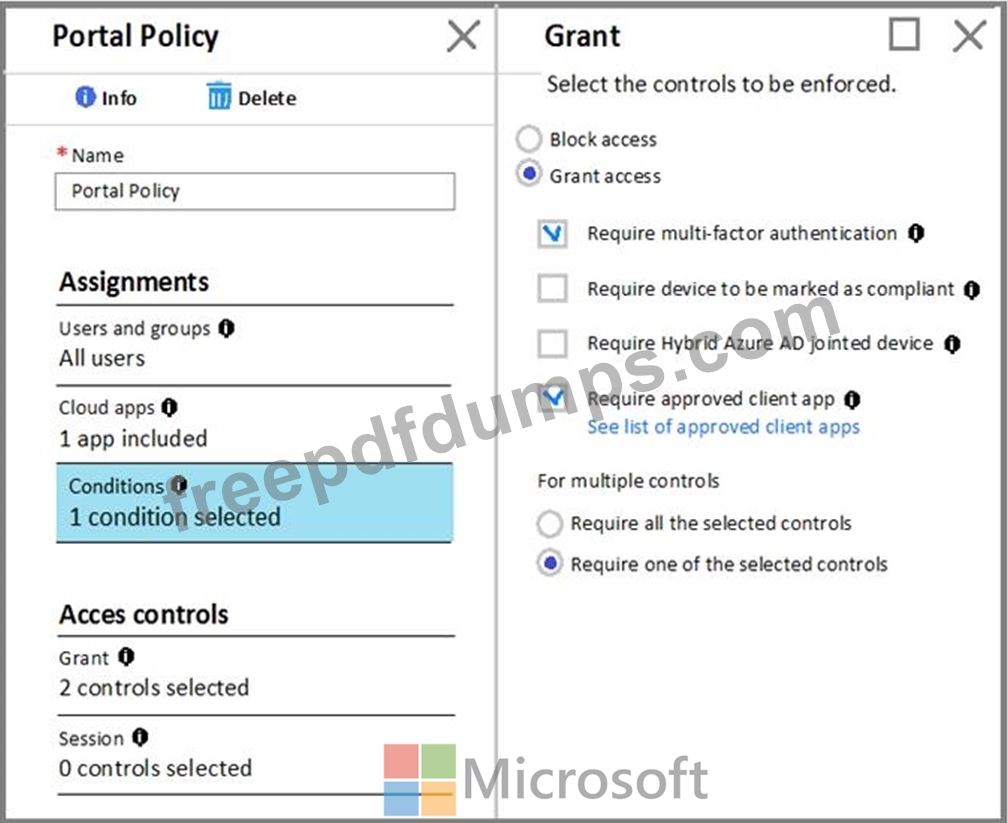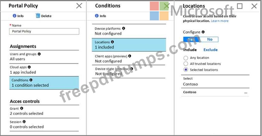 The Conditions settings for Portal Policy are configured as shown in the Conditions exhibit. (Click the Conditions tab.)
