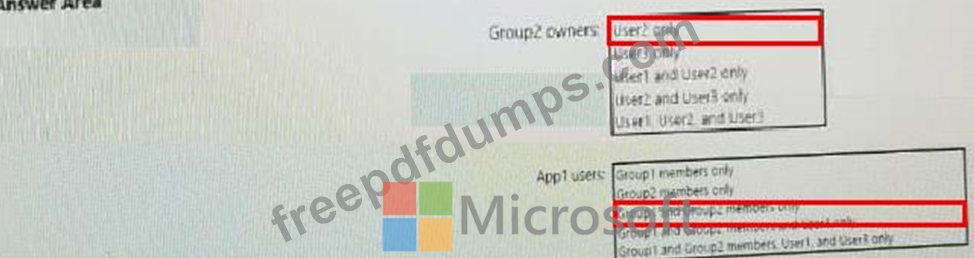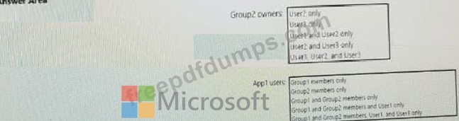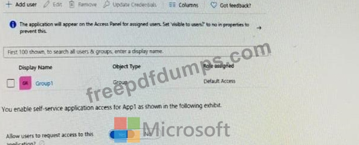 The user and group settings for App1 are configured as shown in the following exhibit.