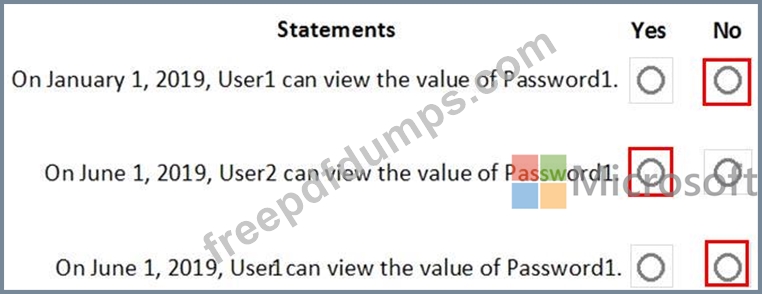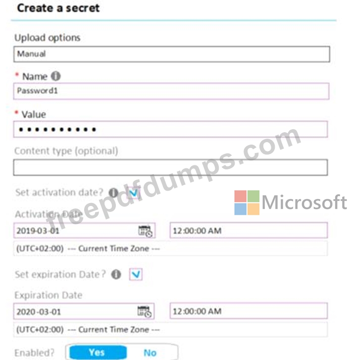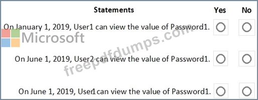 On January 1, 2019, you create a secret in Vault1. The secret is configured as shown in the exhibit. (Click the Exhibit tab.)