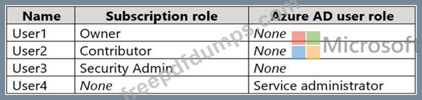 You have an Azure subscription that contains an Azure Active Directory (Azure AD) tenant named contoso.com. The tenant contains the users shown in the following table.