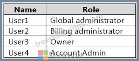 Your company has an Azure subscription named Subscription1. Subscription1 is associated with the Azure Active Directory tenant that includes the users shown in the following table.