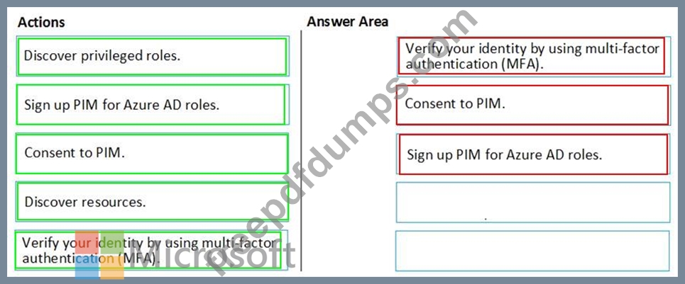 Which three actions should you perform in sequence? To answer, move the appropriate actions from the list of actions to the answer area and arrange them in the correct order.