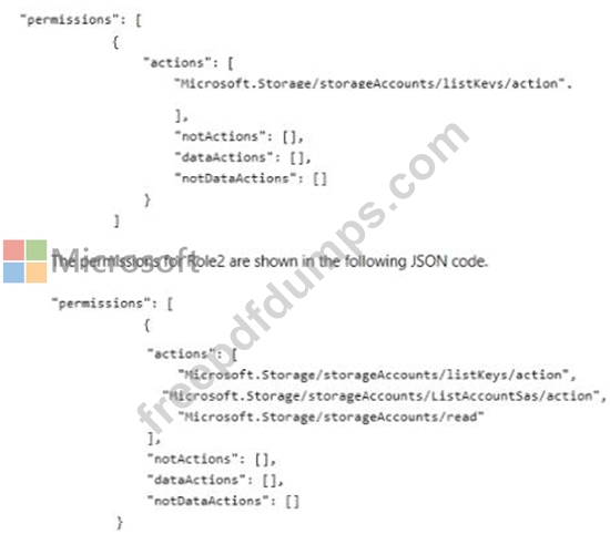 You have two custom Azure rotes named Role1 and Role2 that are scoped to RG1.