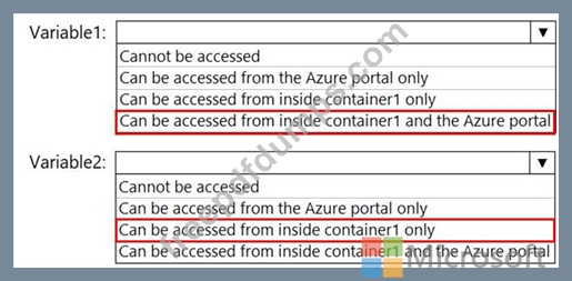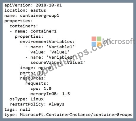 You create an Azure container instance named container1 by using File1.yaml.