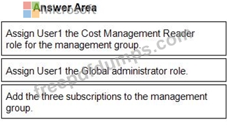 You need to provide User1 with the ability to manage and view costs for the resources across all three subscriptions. The solution must use the principle of least privilege.