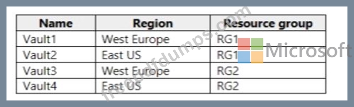 You have an Azure subscription named Sub1 that contains the Azure key vaults shown in the following table.