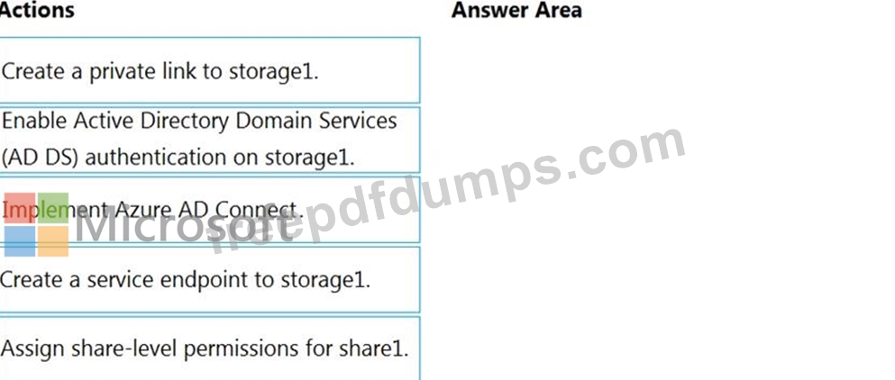 You have an Azure subscription that is linked to an Azure Active Directory (Azure AD) tenant named contoso.com. The tenant contains an Azure Storage account named storage1. Storage1 contains an Azure file share named share1.