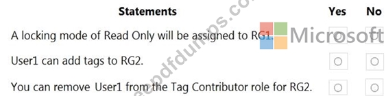 You have an Azure subscription named Subscription1 that contains a resource group named RG1 and a user named User1. User1 is assigned the Owner role for RG1.