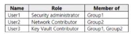 You have an Azure Subscription that is linked to an Azure Active Directory (Azure AD). The tenant contains the users shown in the following table.