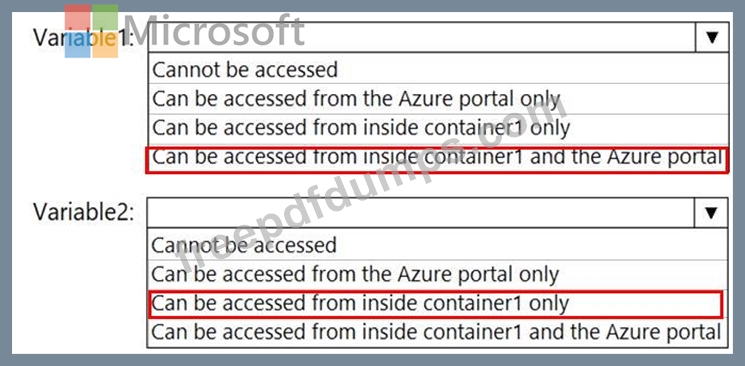 You create an Azure container instance named container1 by using File1.yaml.