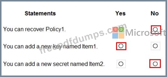 You have an Azure key vault named KeyVault1 that contains the items shown in the following table.