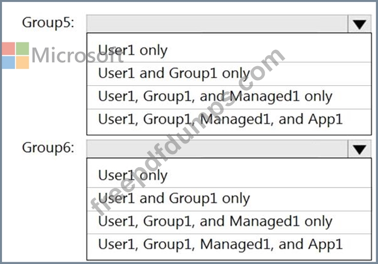 Which resources can you add to Group5 and Group6? To answer, select the appropriate options in the answer area.