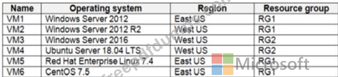 You have Azure virtual machines that have Update Management enabled. The virtual machines are configured as shown in the following table.