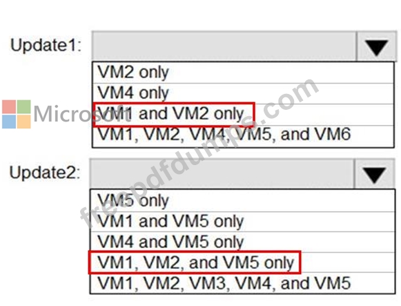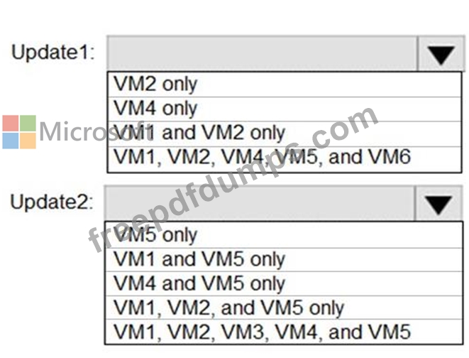 Which additional virtual machines can be updated by using Update1 and Update2? To answer, select the appropriate options in the answer area.