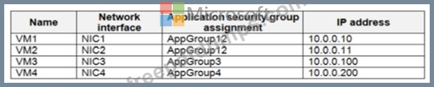 You create a virtual network that contains one subnet. On the subnet, you provision the virtual machines shown in the following table.