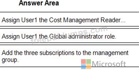 You need to provide User1 with the ability to manage and view costs for the resources across all three subscriptions. The solution must use the principle of least privilege.