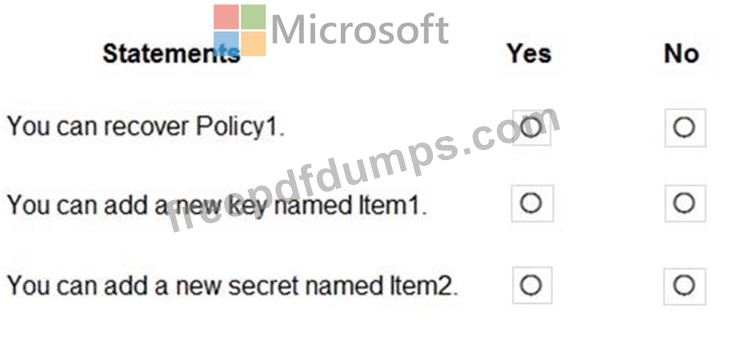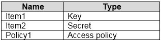 You have an Azure key vault named KeyVault1 that contains the items shown in the following table.
