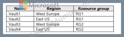 You have an Azure subscription named Sub1 that contains the Azure key vaults shown in the following table.