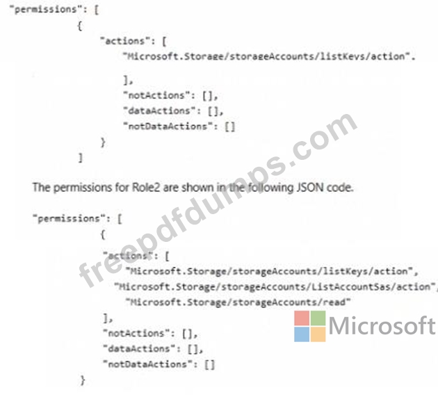 You have two custom Azure rotes named Role1 and Role2 that are scoped to RG1.