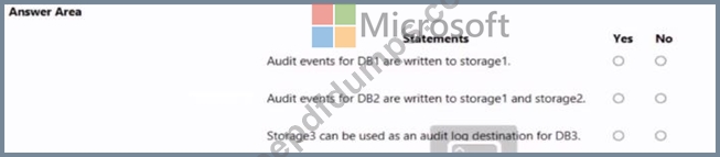 You have an Azure subscription that contains three storage accounts, an Azure SQL managed instance named SQL and three Azure SQL databases. The storage accounts are configured as shown in the following table.