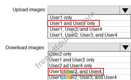 Which users can upload images to Registry1 and download images from Registry1? To answer, select the appropriate options in the answer area.