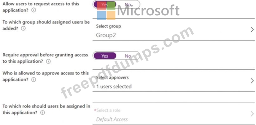 You enable self-service application access for App1 as shown in the following exhibit.