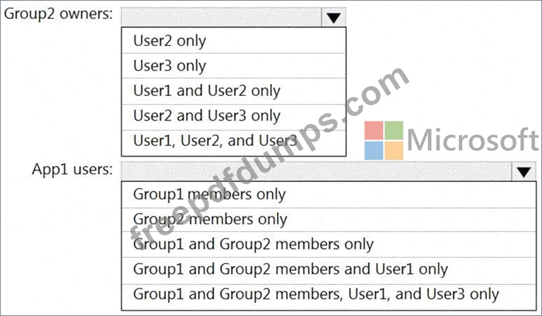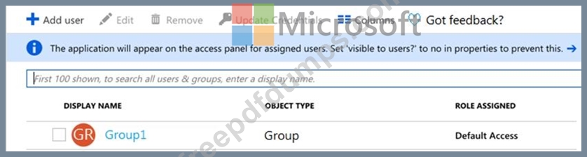 The user and group settings for App1 are configured as shown in the following exhibit.
