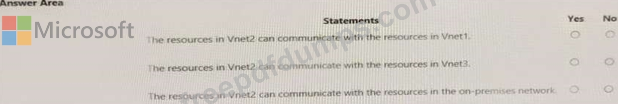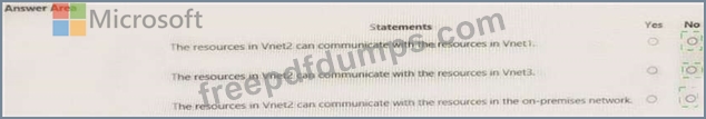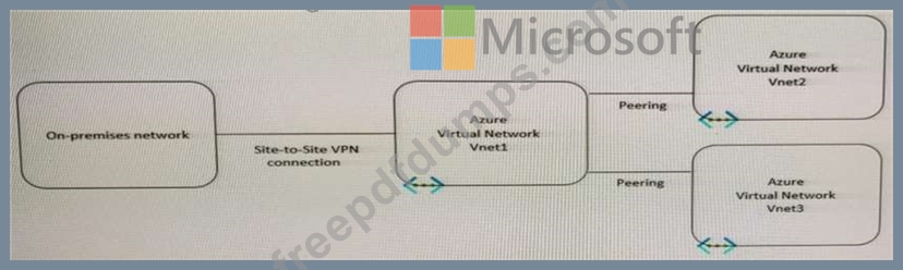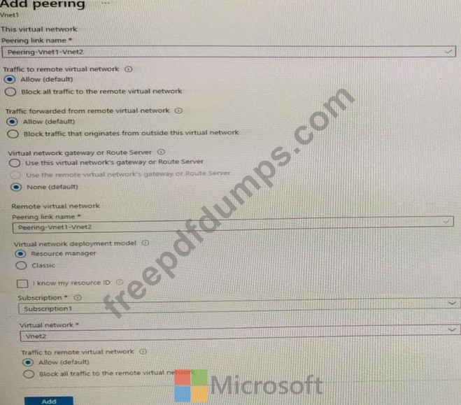 You have a peering connection between Vnet1 and Vnet2 as shown in the Peering-Vnet1-Vnet2 exhibit.