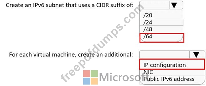 You need to enable the virtual machines on Subnet1 to communicate with each other by using IPv6 addresses assigned by the company. The solution must minimize the number of additional IPv4 addresses.
