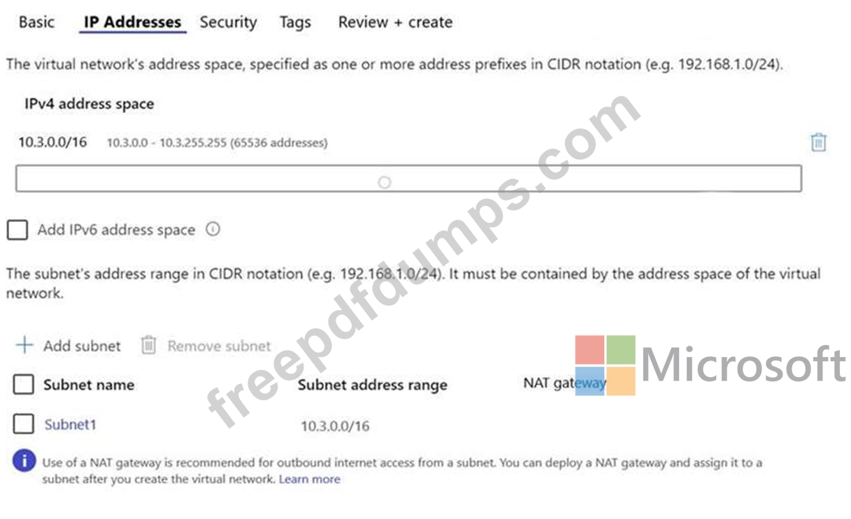 The IP Addresses settings for Vnet1 are configured as shown in the exhibit.
