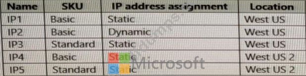 You have an Azure subscription that contains the public IPv4 addresses shown in the following table.